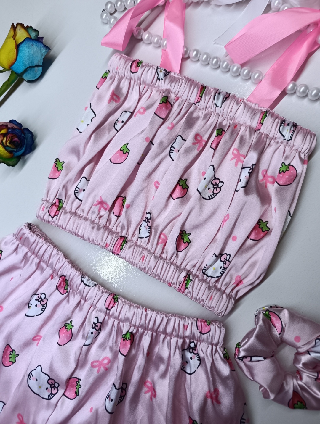 ست سه تیکه ساتن ال ایکس طرح کیتی مناسب سایز 36 تا 42
