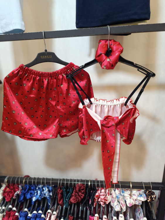 پشت ست به صورت پاپیون بسته میشود و جنس ست ساتن ال ایکس درجه یک میباشد فاق شورتک بلند گرفته شده و مناسب سایز ۳۶ تا ۴۲ میباشد.