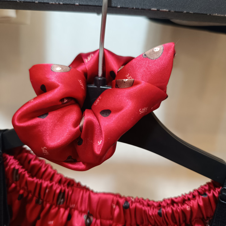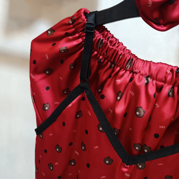 ست سه تیکه ساتن تاپ شورتک طرح تدی قرمز مناسب ۳۶ تا ۴۲