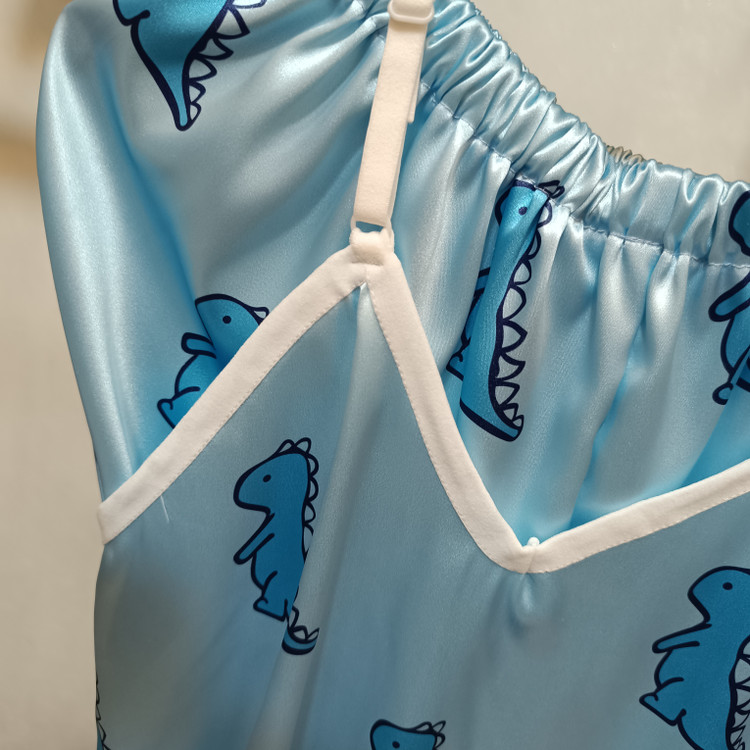 ست سه تیکه ساتن تاپ شورتک طرح دایناسور آبی مناسب ۳۶ تا ۴۲